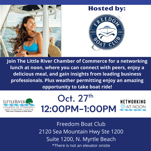 This is a members-only leads and networking group provides an opportunity for members to network in an encouraging environment. Members who attend Networking at Noon regularly stay visible with their colleagues and business peers, providing each other with numerous opportunities to refer business and grow strong, robust, professional relationships. Lunch and refreshments will be provided! Bonus: Weather permitting attendees can go for an after lunch cruise!